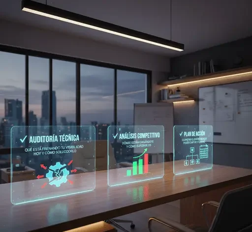 El diagnóstico incluye una evaluación de tu visibilidad actual en motores de IA, un análisis de cómo aparece tu competencia, un mapa de confianza digital de tu marca y un plan de posicionamiento inicial adaptado a tu negocio. Sin compromiso y con respuesta en 24 horas. Es el primer paso para saber exactamente dónde estás parado.